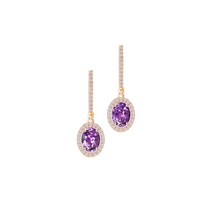 Vòng tai vàng đính đá thạch anh tím và kim cương