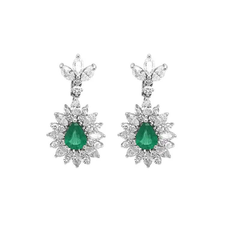 Vòng tai vàng đính ngọc lục bảo và kim cương