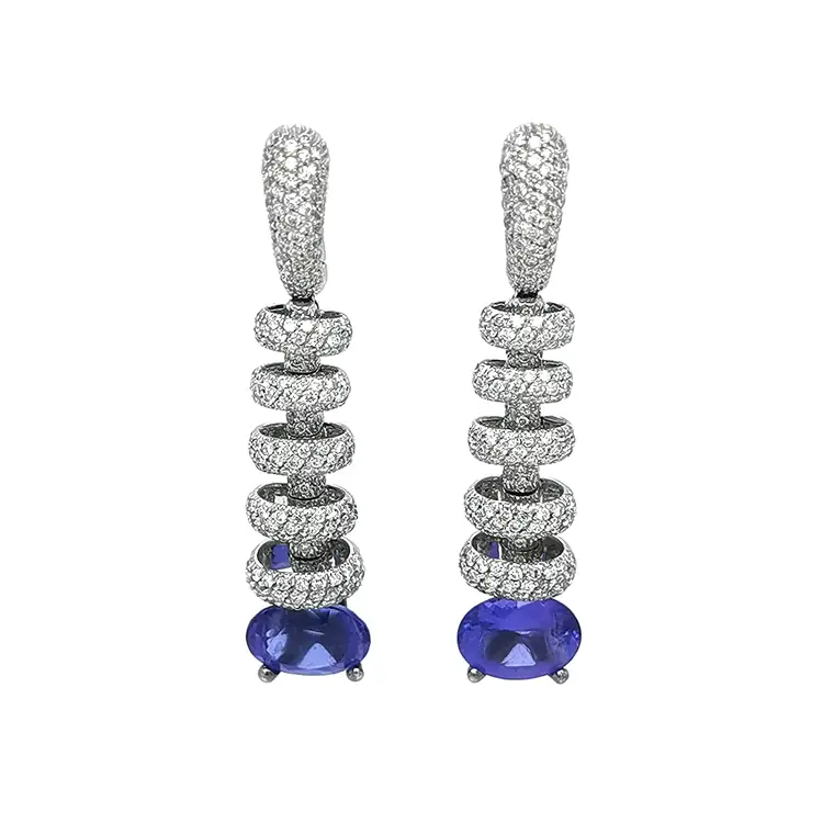 Đôi bông tai vàng trắng đính tanzanit và kim cương của BENY Jewellery được thiết kế dành cho những người phụ nữ yêu thích sang trọng thật sự và phong cách riêng biệt. Chế tác từ vàng trắng 18 kt (750/1000) với lớp đánh bóng gương, kết hợp với những viên đá quý nổi bật — mỗi chi tiết phản ánh tay nghề cao cấp và chất lượng vượt trội, hoàn hảo cho những khoảnh khắc đáng nhớ.