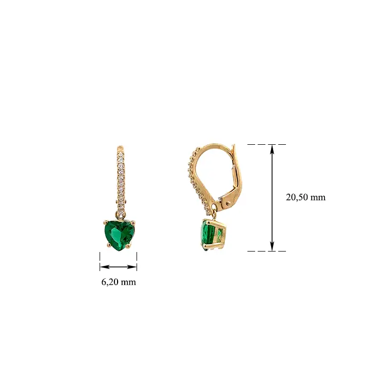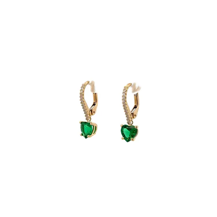 Vòng tai vàng đính zircon và hình trái tim màu xanh ngọc lục bảo