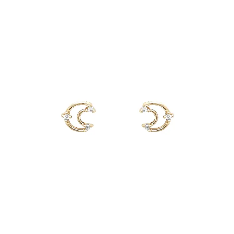 Vòng tai vàng hình trăng lưỡi liềm đính đá zircon