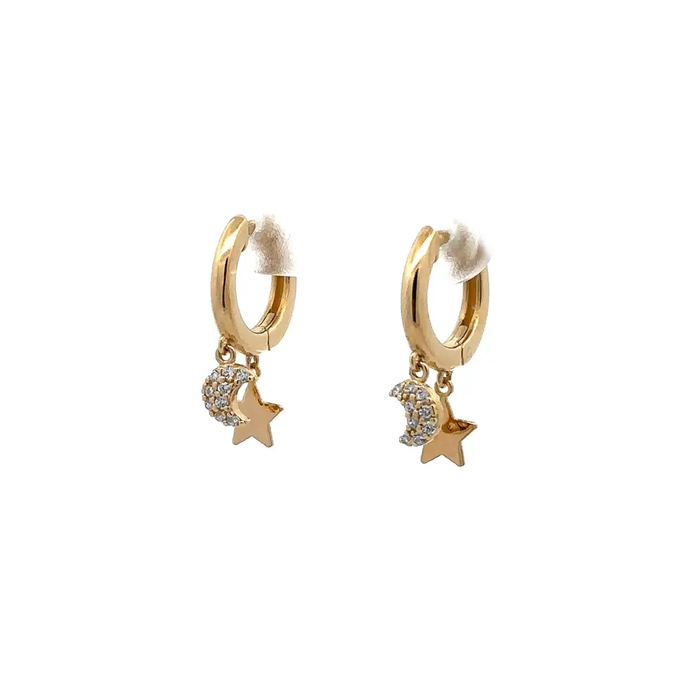 Vòng tai vàng hình trăng lưỡi liềm và ngôi sao đính đá zircon