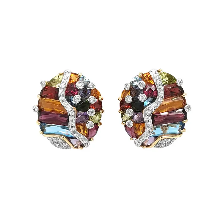 Vòng tai vàng kết hợp đá bán quý và kim cương