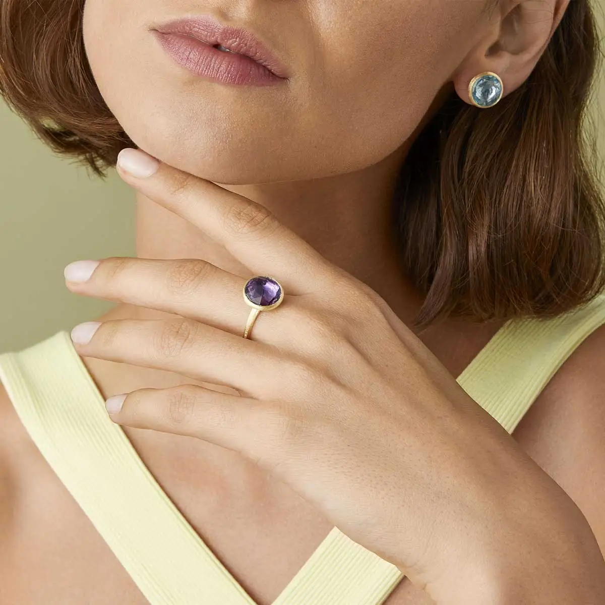 Bông tai Marco Bicego Jaipur OB1739 TP01 Y-02 kết hợp sự tinh tế với điểm nhấn màu sắc trong thiết kế hài hòa. Chúng được chế tác từ vàng vàng 18K (750/1000) với kiểu hoàn thiện bóng & mờ, giúp ánh sáng và kết cấu tương phản đẹp mắt. Khóa là puzeta (đinh khuyên), đảm bảo đeo chắc chắn và thoải mái.
