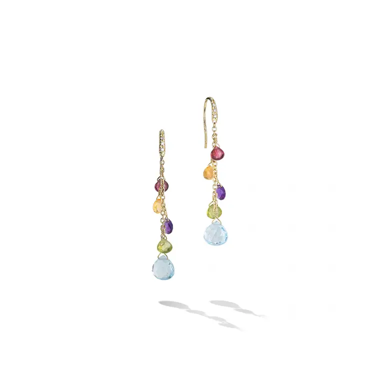 Bộ sưu tập Paradise là lời ca ngợi màu sắc, ánh sáng và niềm vui cuộc sống. Marco Bicego kết hợp những sợi dây chuyền vàng 18K tinh xảo với bảng màu đá quý rực rỡ – từ tourmaline, aquamarine cho tới thạch anh và topaz. Kết quả là những món trang sức tràn đầy năng lượng tươi vui, gợi nhớ đến bãi biển ngập nắng và không khí tự do của mùa hè.