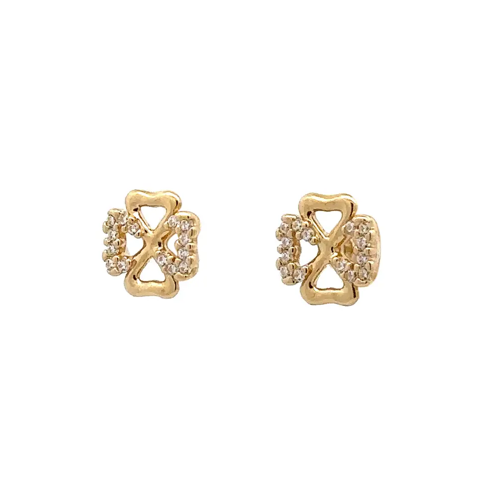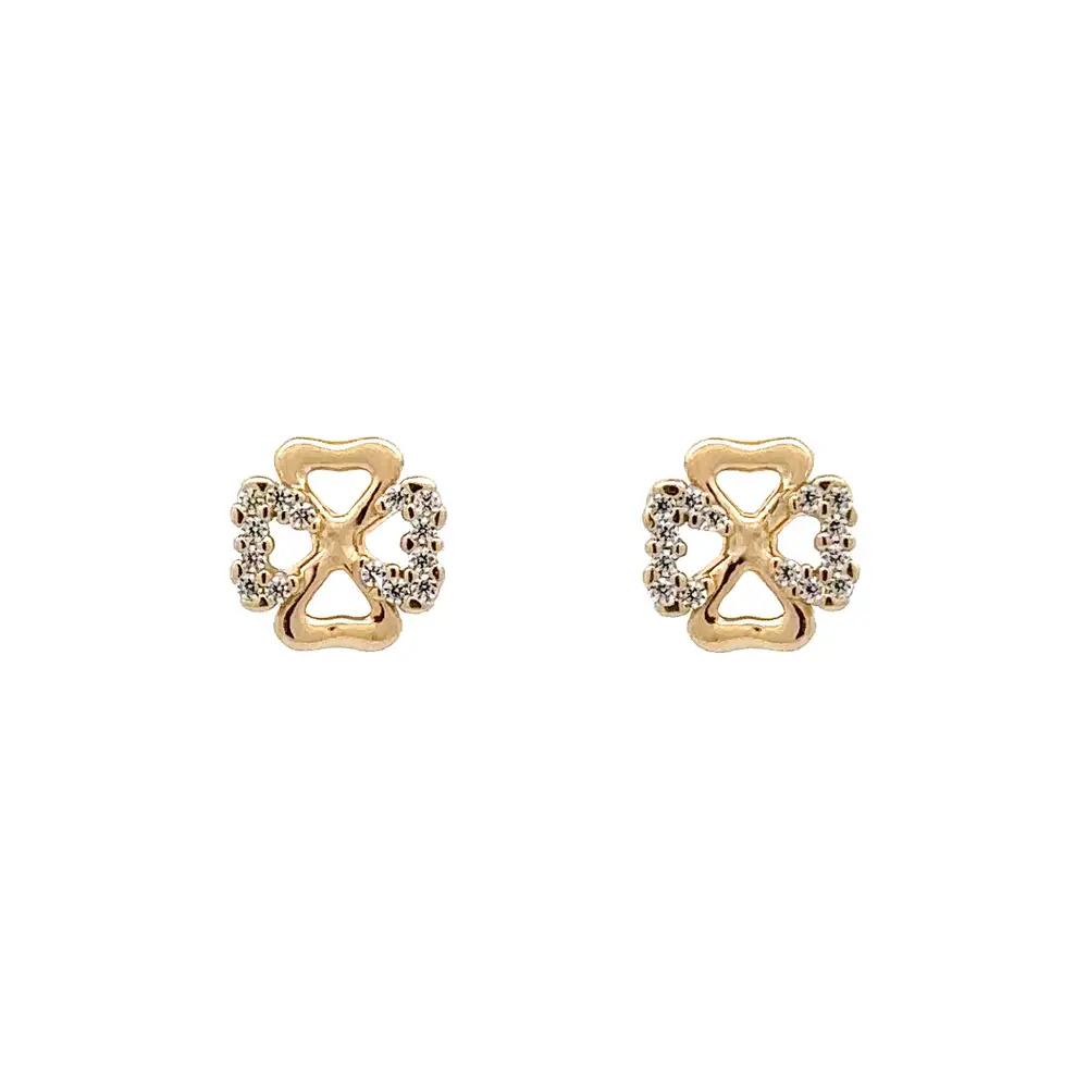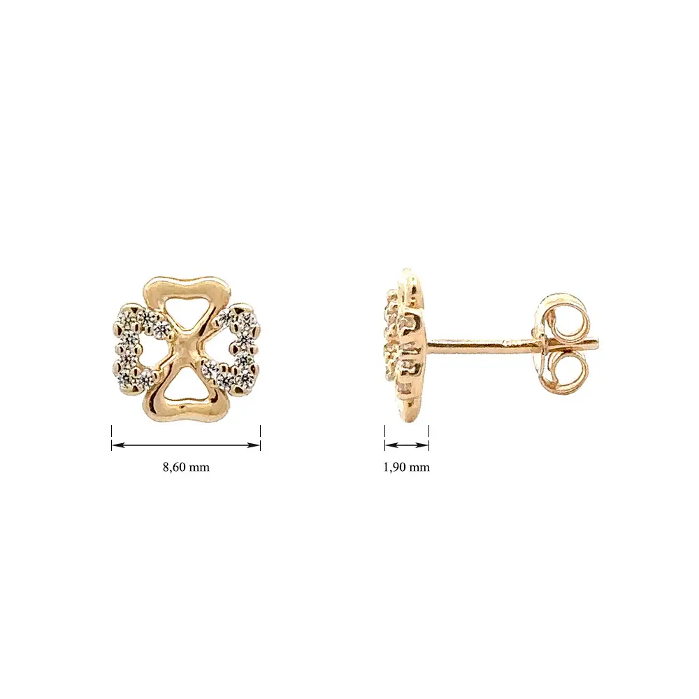 Vòng tai vàng Pecek hình lá bốn cánh với đá zirconia