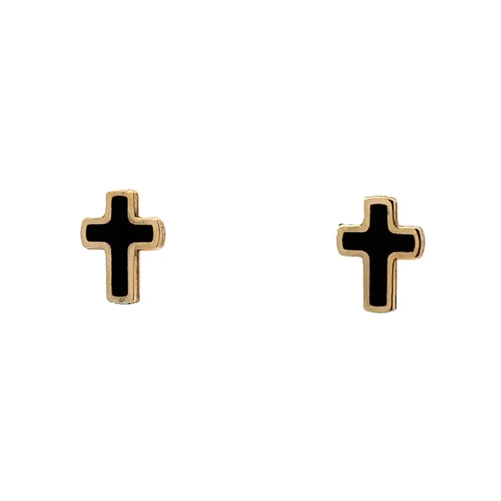 Vòng tai vàng Pecek hình thánh giá với men sứ