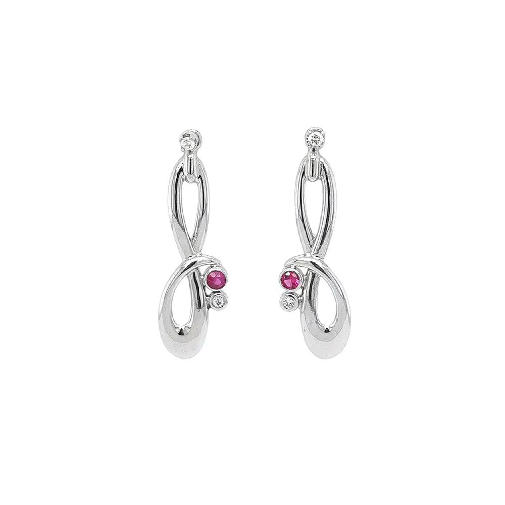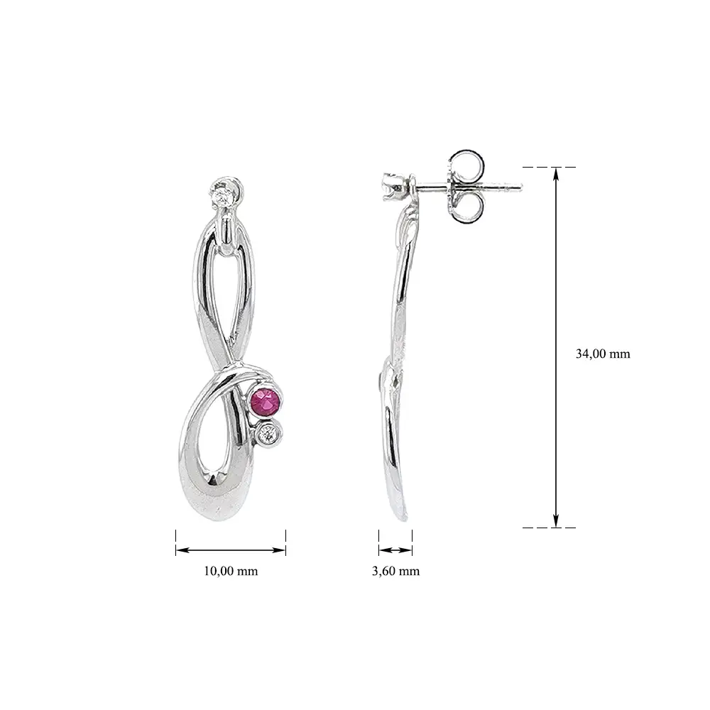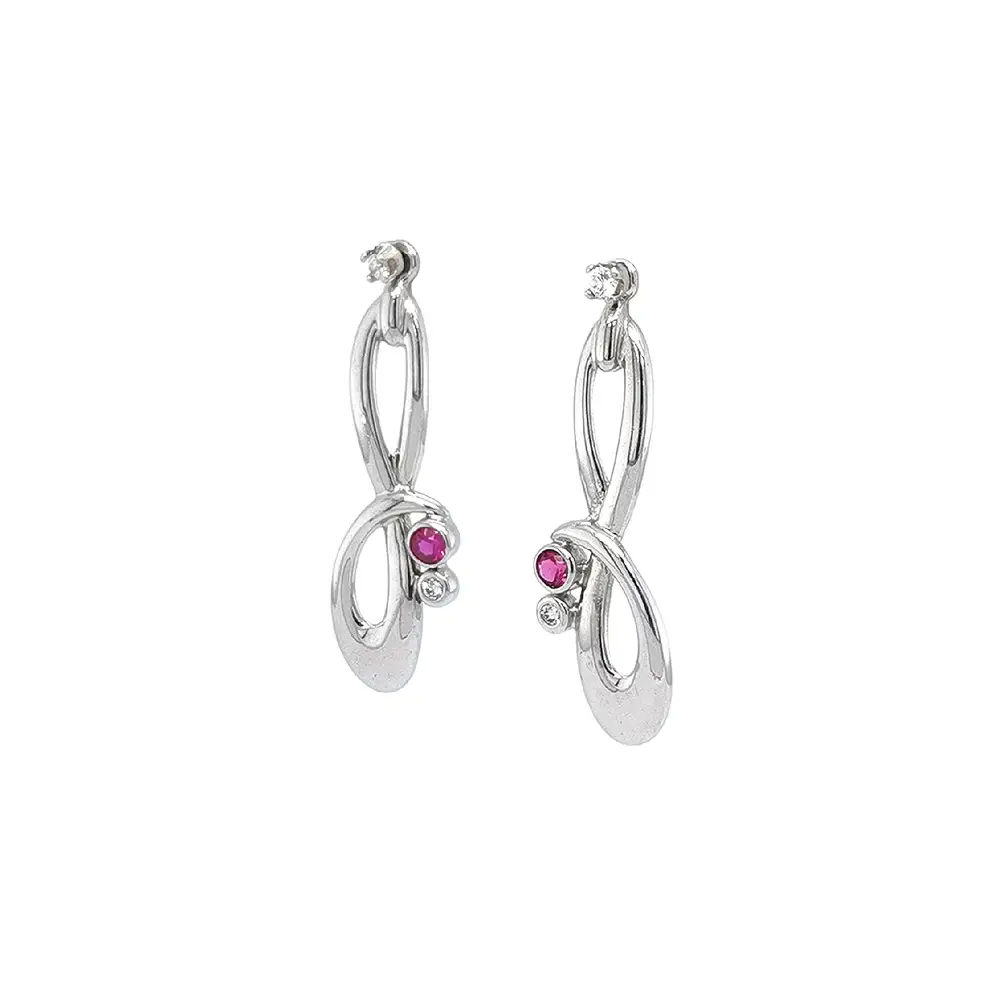 Vòng tai vàng trắng cao cấp đính ruby và zircon
