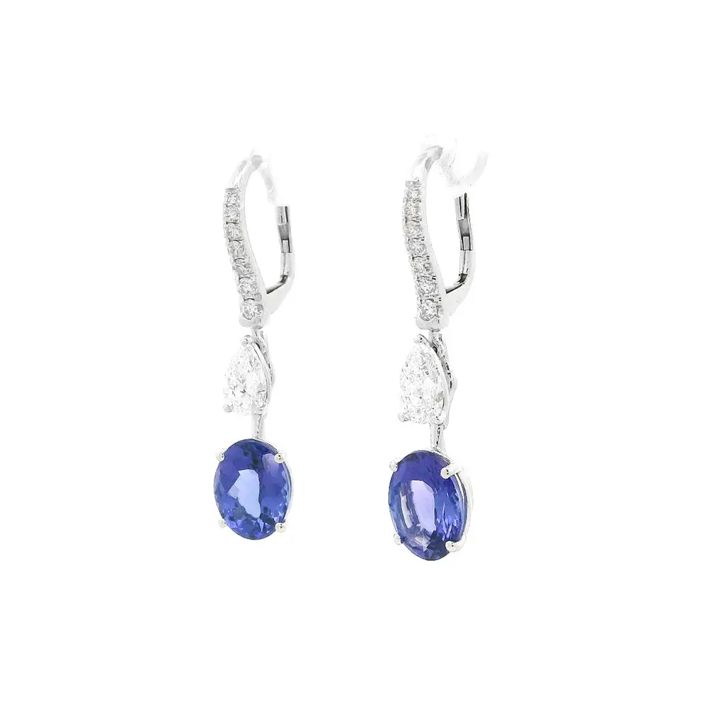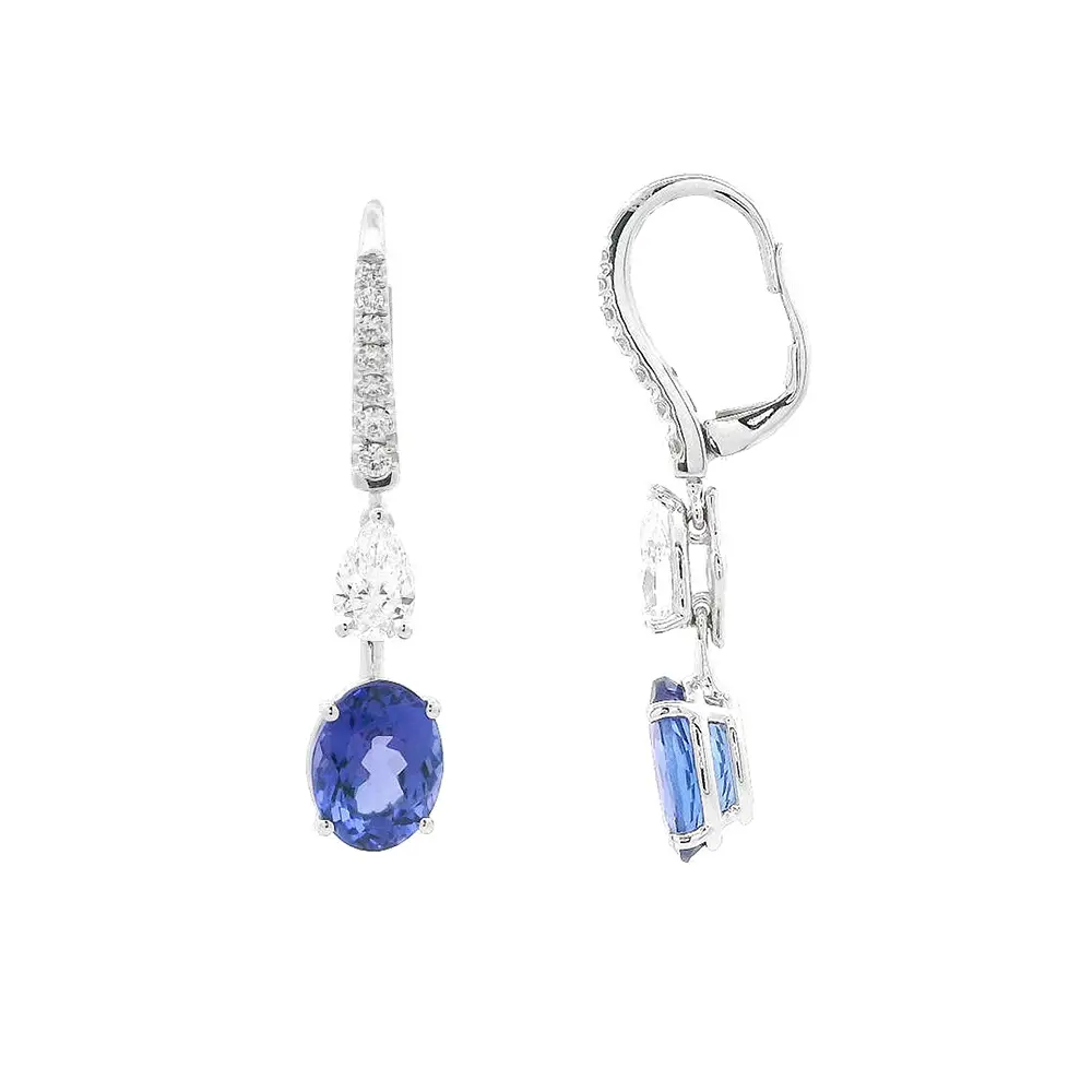 Vòng tai vàng trắng cao cấp với đá Tanzanite hình oval