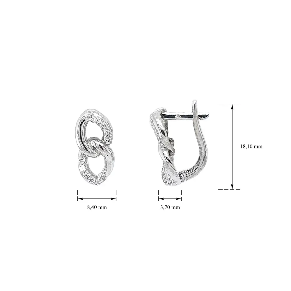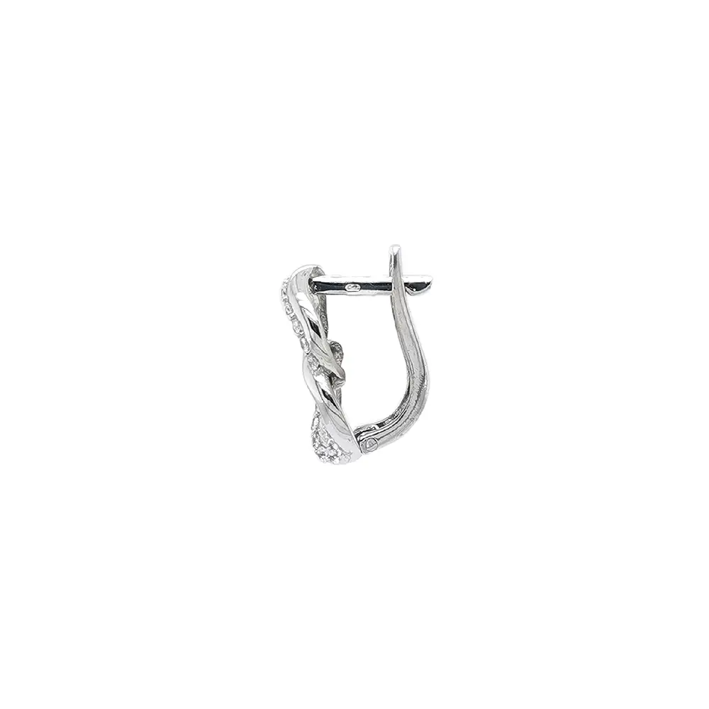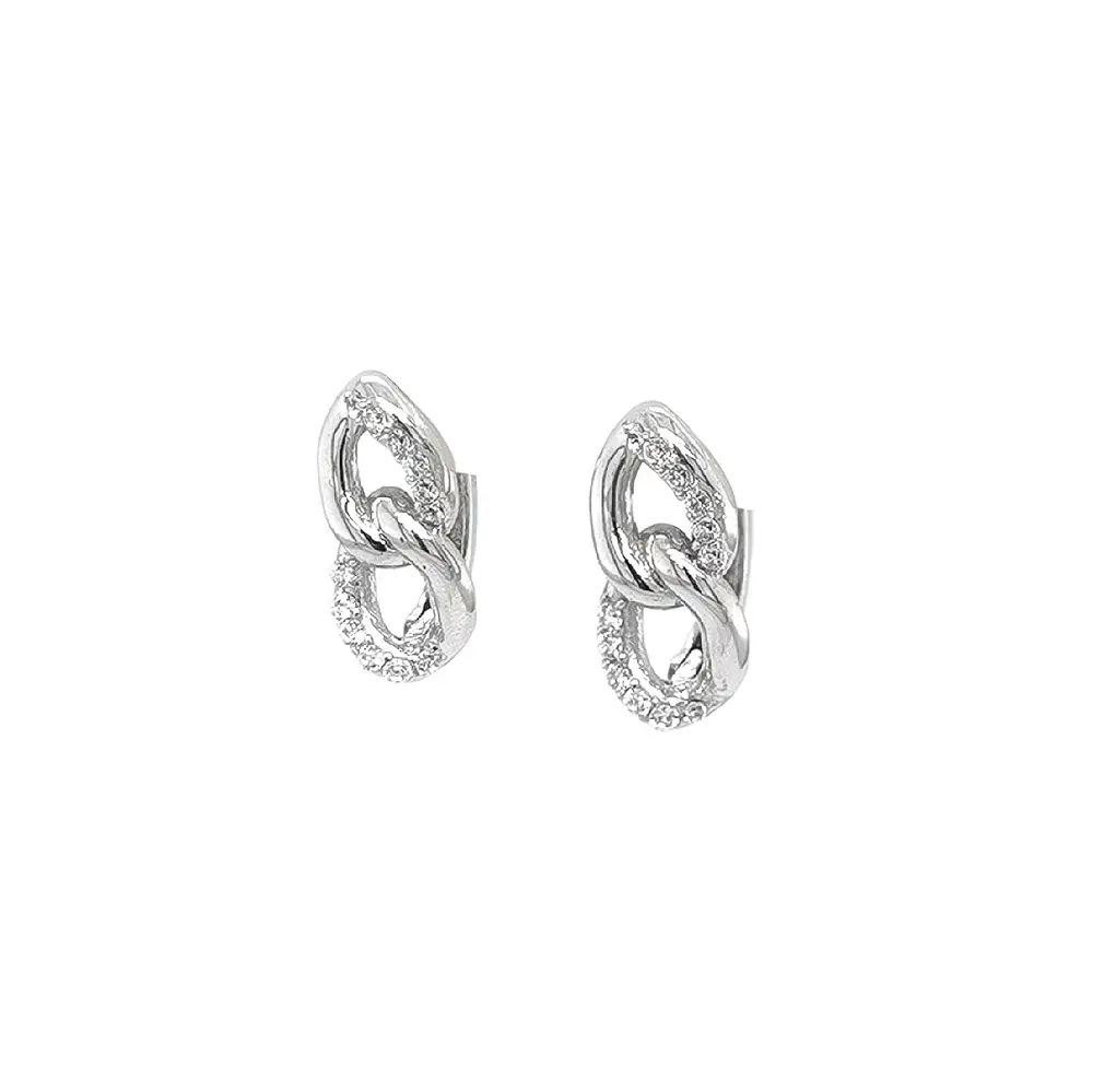 Vòng tai vàng trắng đính đá zircon với thiết kế liên kết đan xen