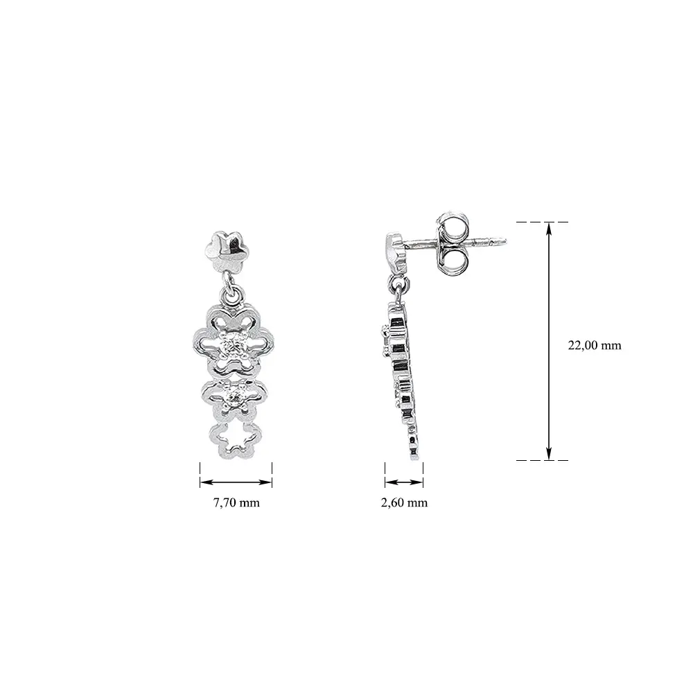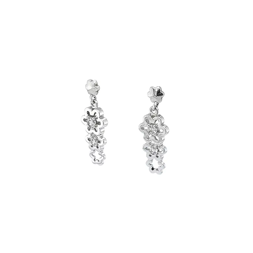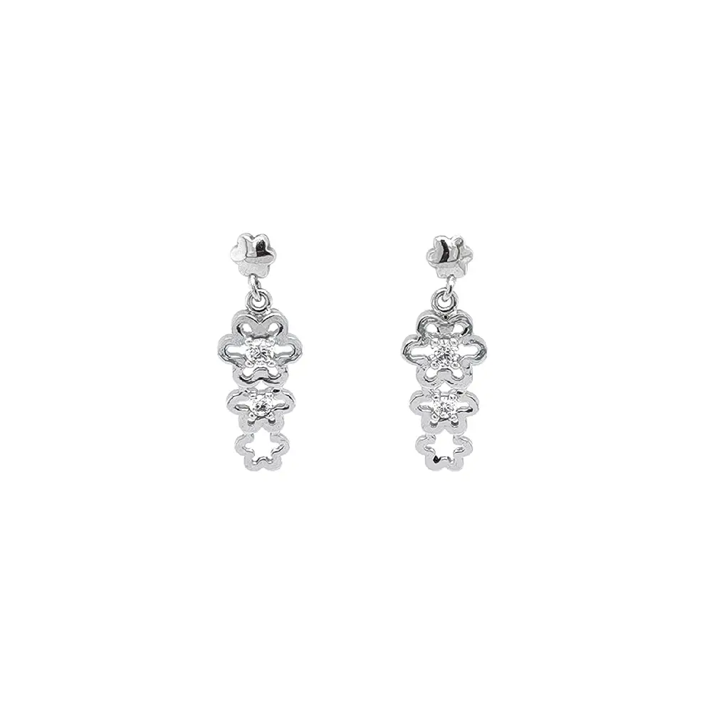 Vòng tai vàng trắng với hoa văn hoa và đá zircon