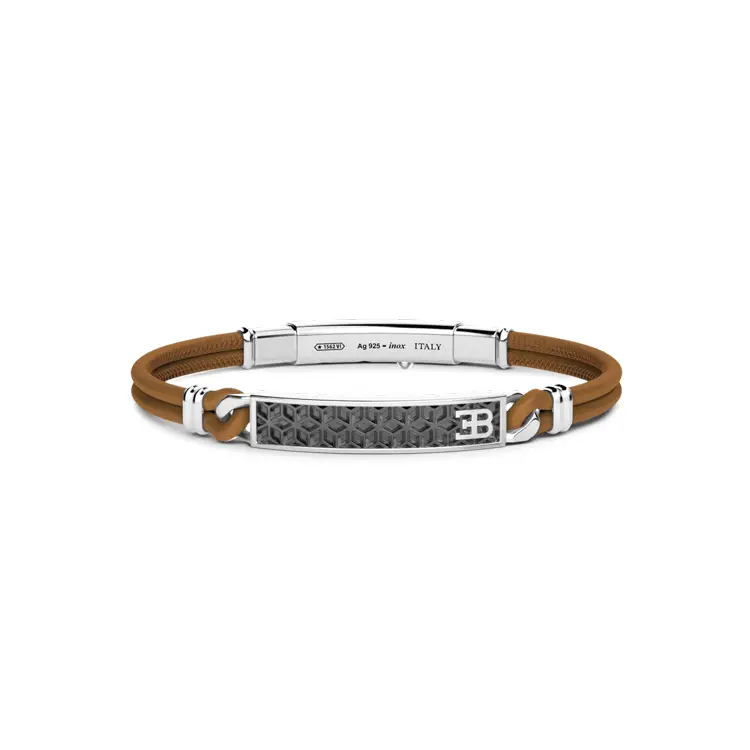 Vòng tay bạc Zancan Bugatti với da B002-MA