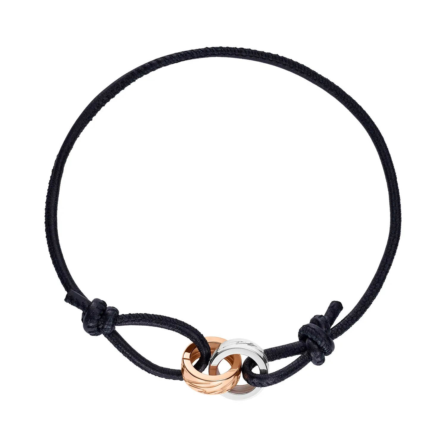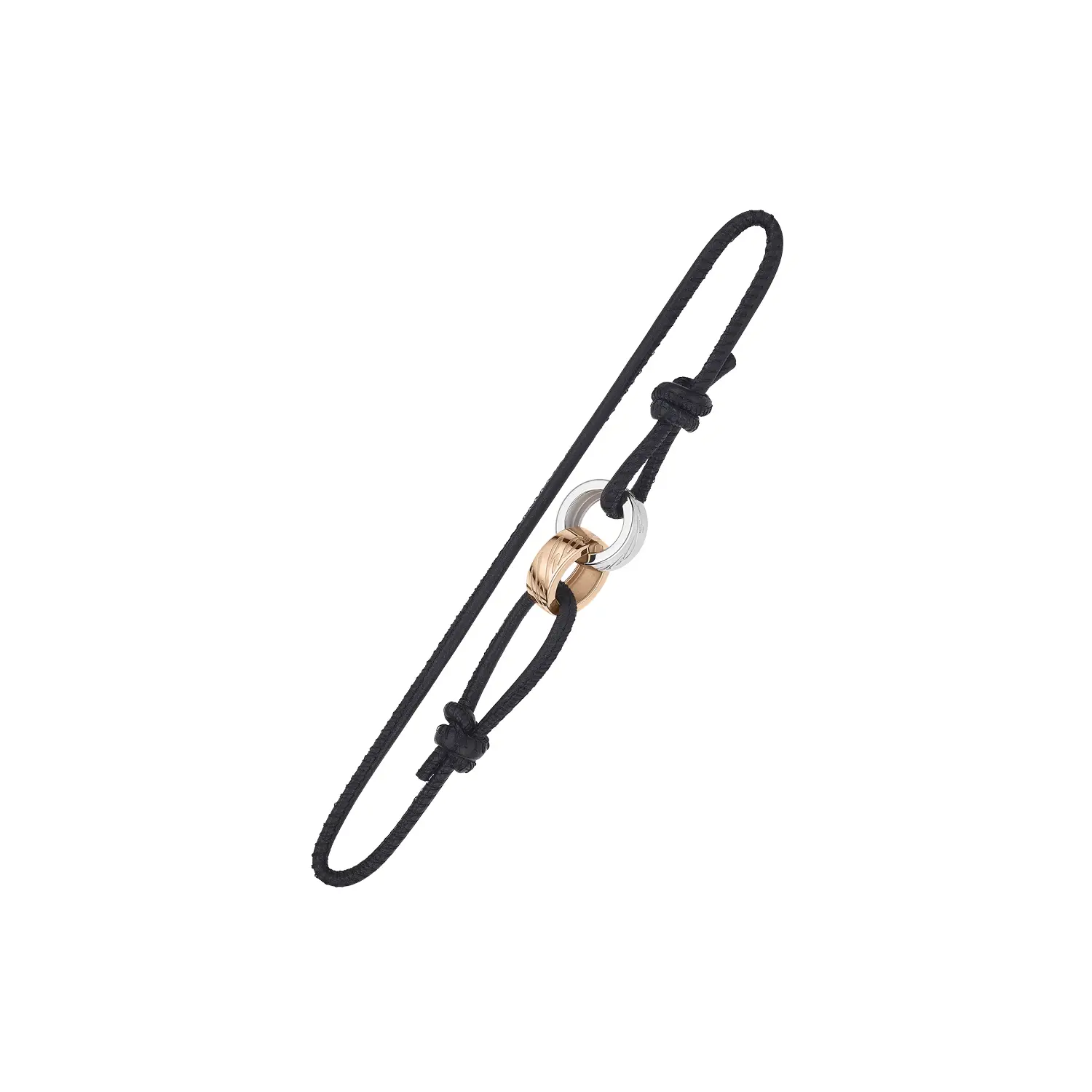 Chiếc vòng tay tinh xảo này thuộc bộ sưu tập Chopardissimo, là sự kết hợp hoàn hảo giữa thiết kế táo bạo và nét thanh lịch tinh tế. Được chế tác từ vàng hồng và vàng trắng 18 k, kết hợp cùng dây da đen, tạo nên sự tương phản đầy cuốn hút giữa ánh kim loại và cảm giác mềm mại của da. Chữ ký Chopard khắc nổi trên phần vàng làm điểm nhấn sang trọng và độc đáo.