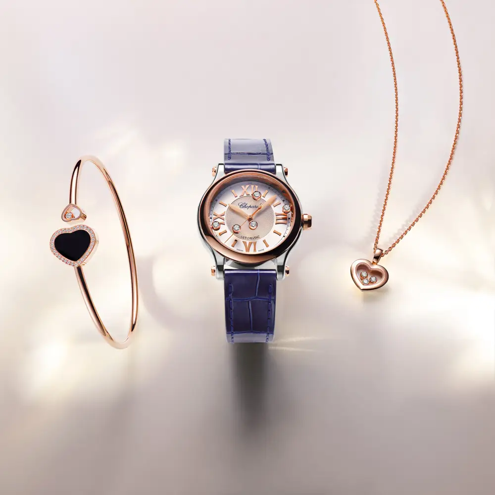 Happy Hearts là một trong những bộ sưu tập trang sức mang tính biểu tượng nhất của Chopard. Bộ sưu tập kết hợp biểu tượng trái tim – dấu hiệu phổ quát của tình yêu – với tinh thần vui tươi từ dòng Happy Diamonds huyền thoại. Những trái tim với nhiều kích thước và màu sắc khác nhau tạo nên bố cục hài hòa, vừa dịu dàng vừa tinh tế.