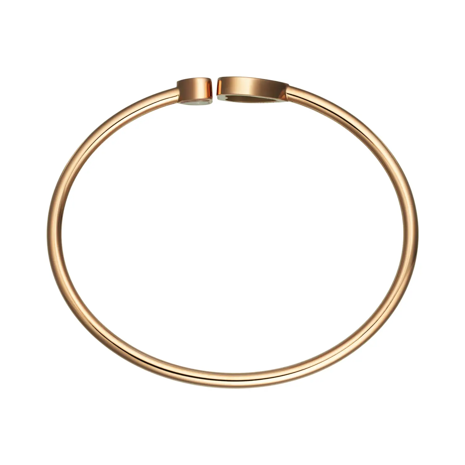 Chiếc vòng tay tinh tế này thuộc bộ sưu tập Happy Hearts, thể hiện sự dịu dàng, nữ tính và tình yêu trong phong cách đặc trưng của Chopard. Được chế tác từ vàng hồng 18 k, điểm xuyết mặt trái tim bằng xà cừ cùng viên kim cương chuyển động tự do khoảng 0,05 ct, tạo nên vẻ đẹp hài hòa giữa sắc vàng ấm và ánh sáng nhẹ nhàng của đá quý.