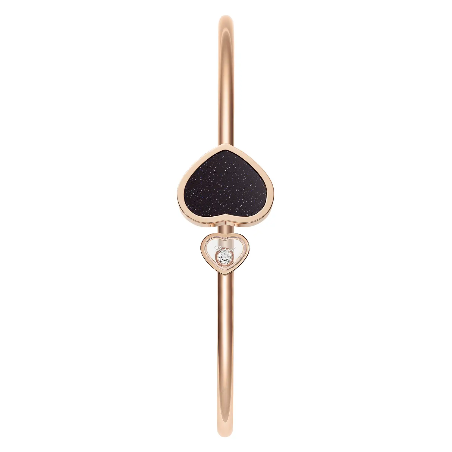 Vòng tay Chopard Happy Hearts 857482-5513 thể hiện sự thanh lịch, nữ tính và nét sang trọng hiện đại, đặc trưng của bộ sưu tập Happy Hearts. Được chế tác từ vàng hồng 18 cara có nguồn gốc đạo đức, chiếc vòng được trang trí bằng đá aventurine xanh lam hình trái tim lấp lánh như bầu trời đêm và viên kim cương chuyển động tự do 0,05 ct. Sự tương phản giữa vàng hồng ấm áp và xanh đậm tạo nên vẻ đẹp tinh tế, cân đối.