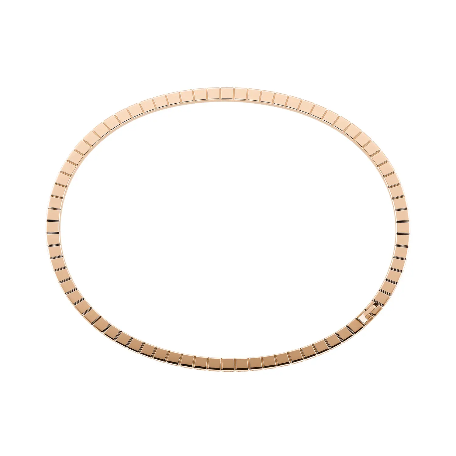 Vòng tay Chopard Ice Cube được chế tác từ vàng hồng 18k có nguồn gốc đạo đức, thể hiện vẻ đẹp thanh lịch hiện đại và thiết kế tinh giản đặc trưng. Hình dáng lấy cảm hứng từ khối lập phương kết hợp giữa đường nét hình học chính xác và ánh kim loại được đánh bóng mềm mại, phản chiếu ánh sáng trong từng cử động. Kiểu dáng tối giản tôn lên tay nghề tinh xảo và phong cách đặc trưng của bộ sưu tập Ice Cube.