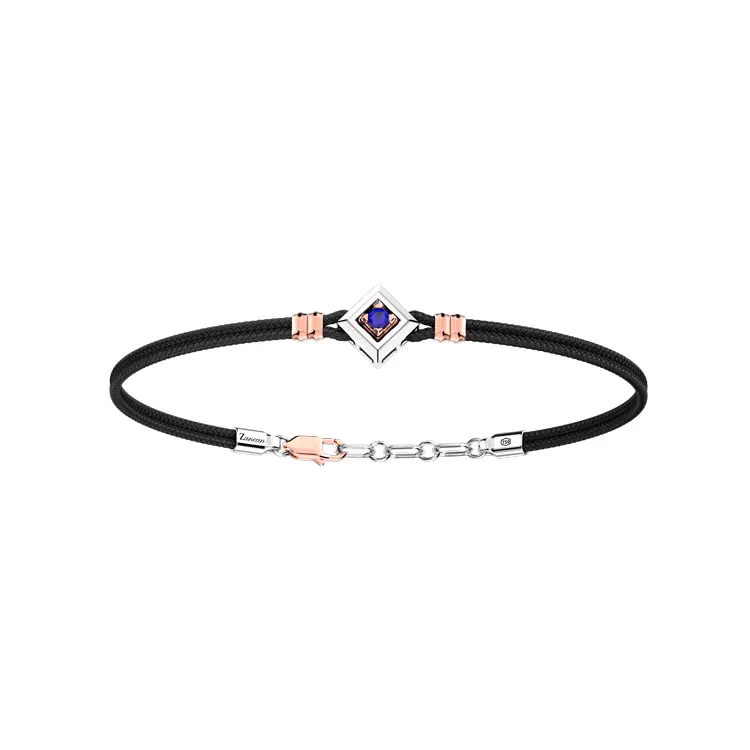 Vòng tay nam Zancan đính sapphire kết hợp thẩm mỹ bicolor hiện đại với chế tác Ý chuẩn xác. Chế tác từ vàng 18kt (750/1000) hai tông trắng & hồng cùng hoàn thiện đánh bóng; kết cấu linh hoạt kiểu dây (cord-style) ôm tay thoải mái, giữ vẻ lịch lãm từ trang phục thường ngày đến trang trọng.