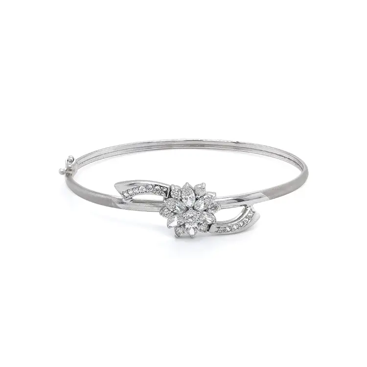 Vòng tay nữ cố định với đá zircon trắng vàng