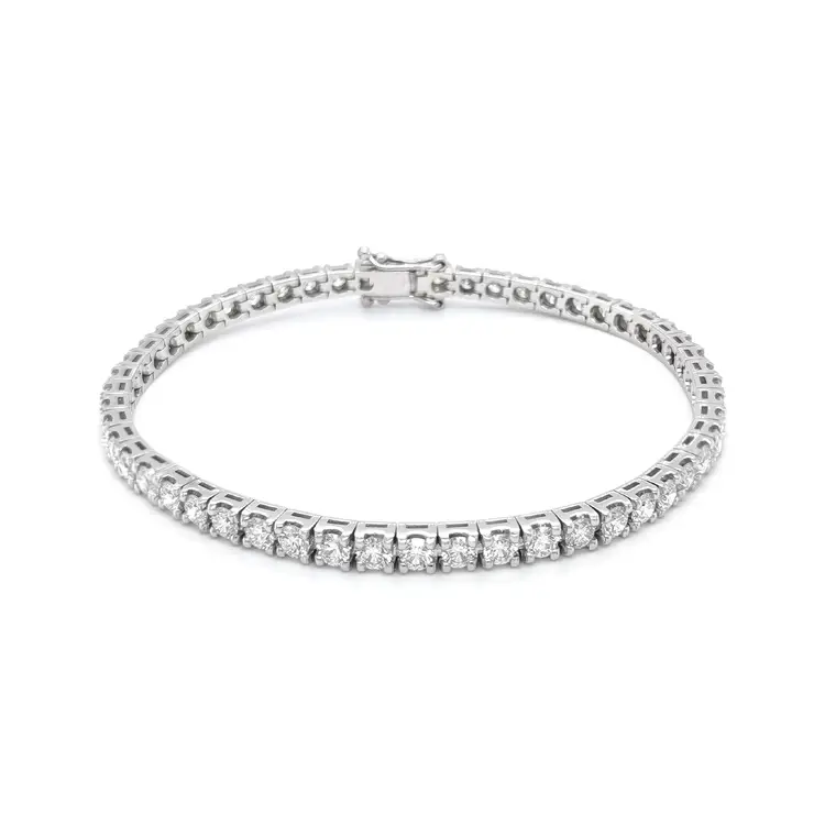 Chiếc vòng tay tennis được chế tác từ vàng trắng 18kt (750/1000) mang vẻ đẹp thanh lịch và tinh xảo vượt thời gian. Bề mặt được đánh bóng hoàn hảo, kích thước 3,45 mm rộng, 3,30 mm cao và dài 19 cm tạo nên sự cân đối tuyệt vời, ôm trọn cổ tay một cách mềm mại.