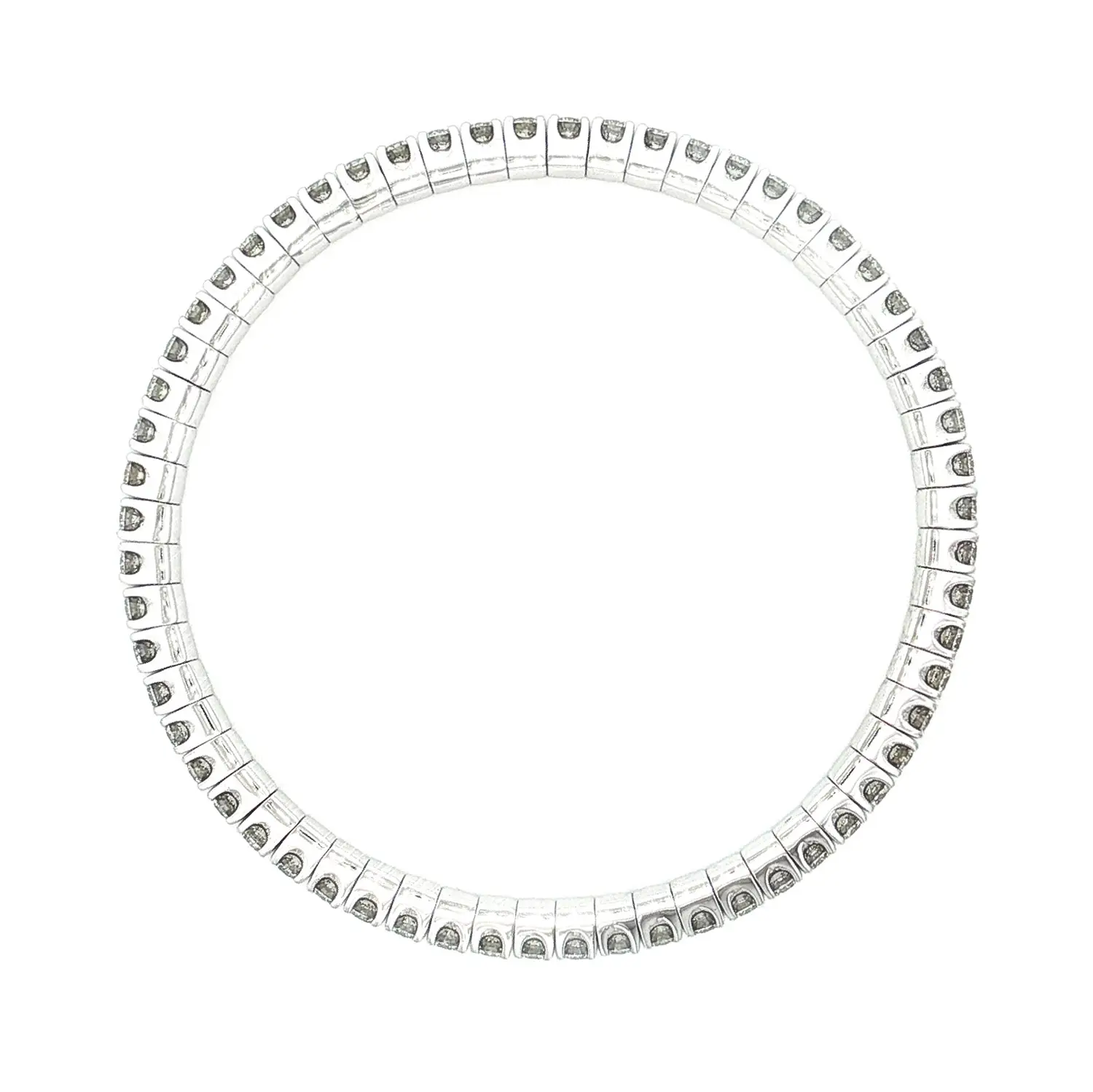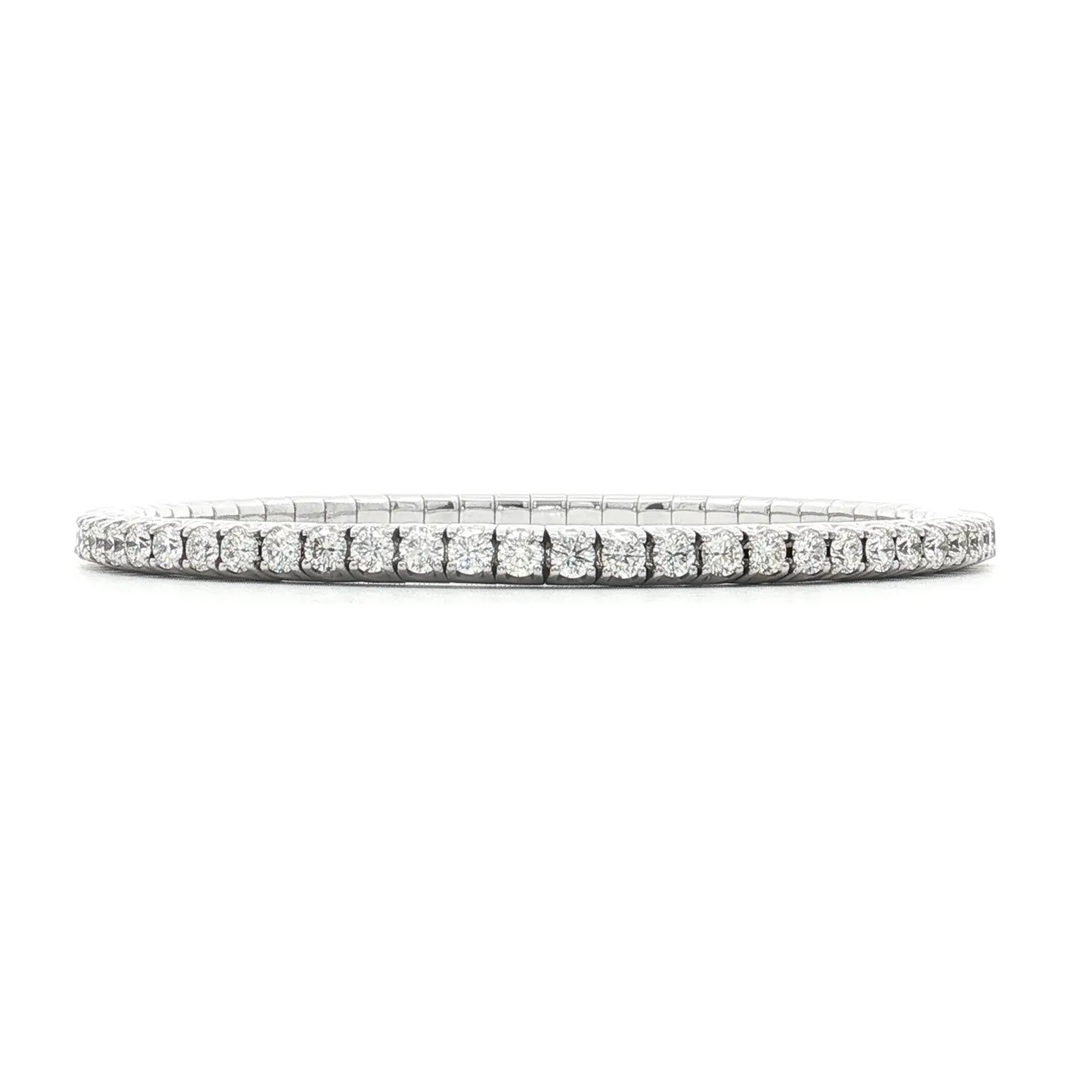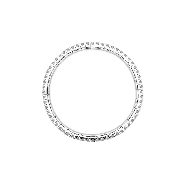 Với bề rộng 3,80 mm, chiều cao 4,30 mm, chiếc vòng vừa thanh thoát vừa chắc chắn. Mỗi viên kim cương tròn 2,80 mm, màu G, độ trong VS, phản chiếu ánh sáng rực rỡ qua từng chuyển động. Chiều dài linh hoạt 18–22 cm mang lại sự thoải mái và ôm sát cổ tay hoàn hảo trong mọi hoàn cảnh.