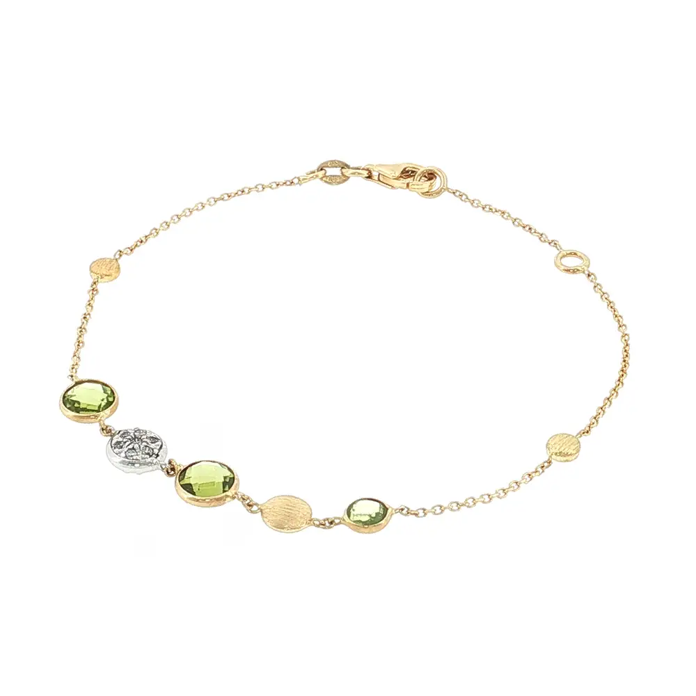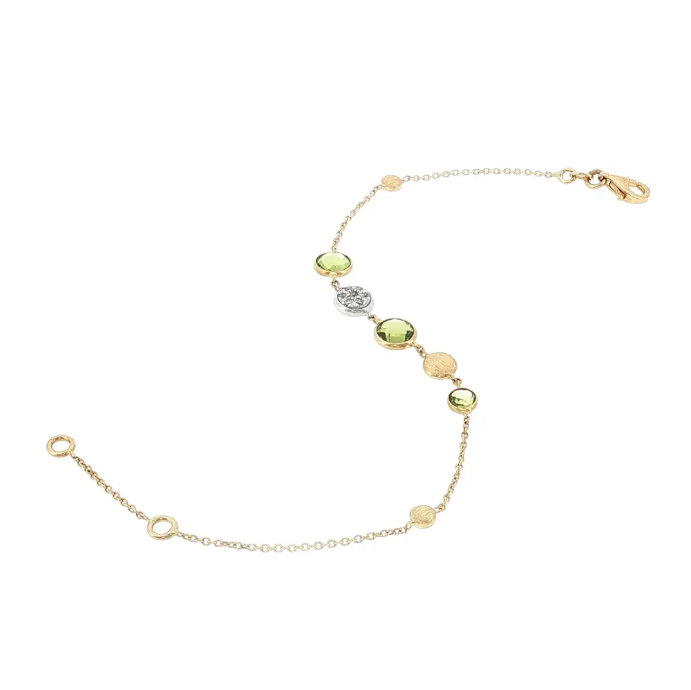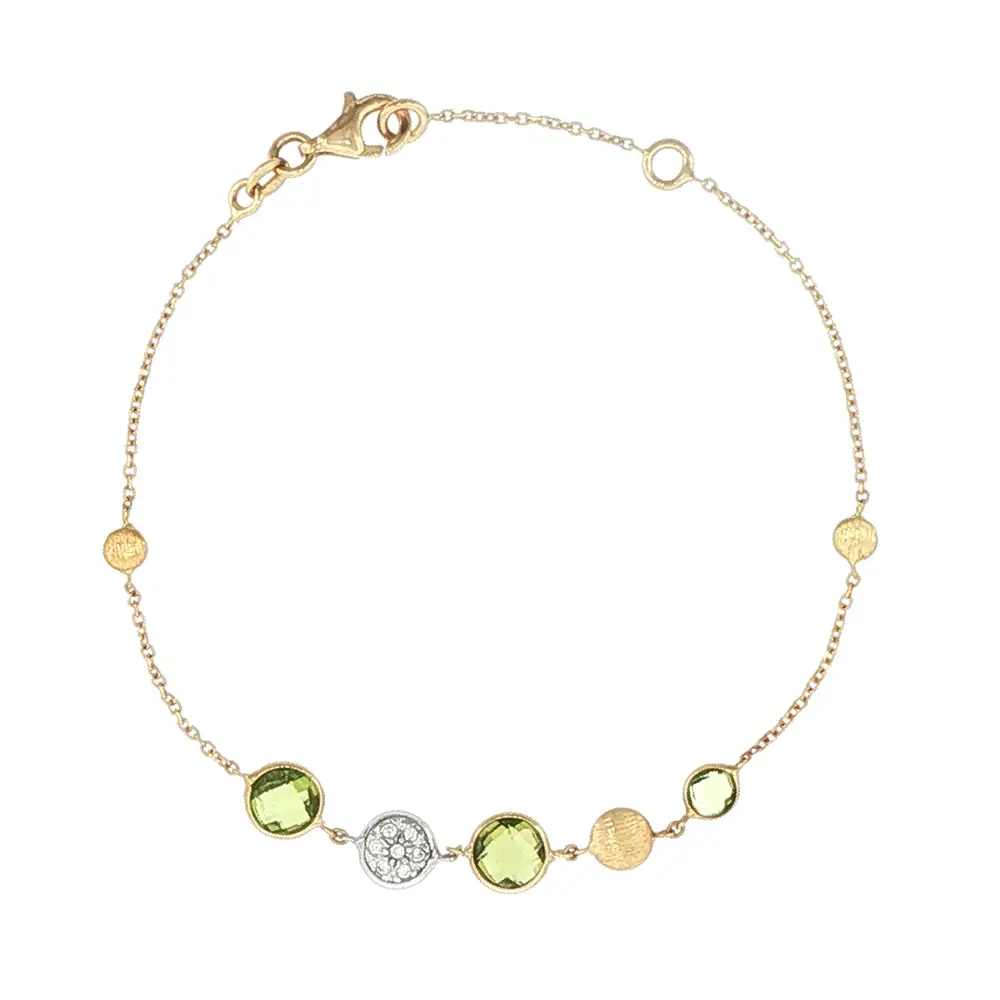 Vòng tay vàng 14K với đá peridot và zirconia
