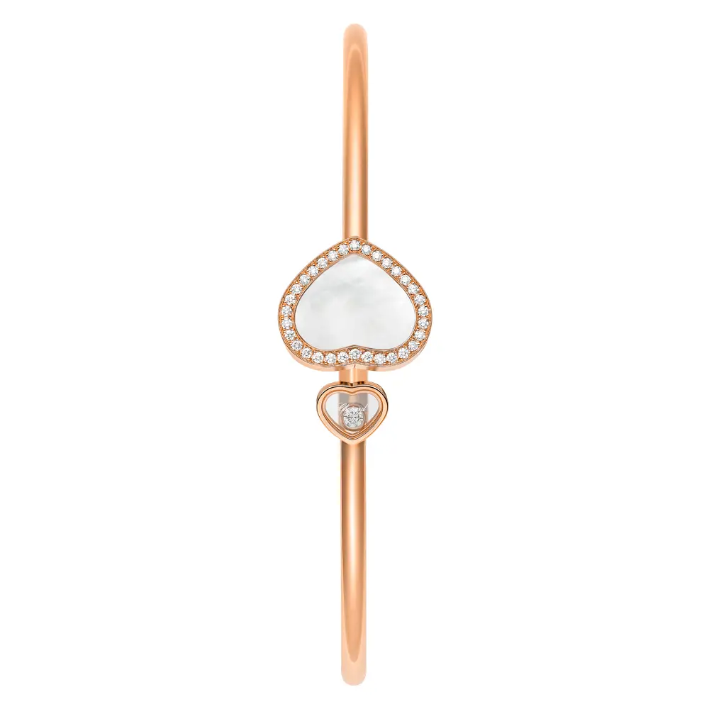 Chopard Happy Hearts Bangle 85A074-5302 thể hiện vẻ đẹp thanh lịch, dịu dàng và quyến rũ nữ tính, đúng với tinh thần của thương hiệu Chopard. Thuộc bộ sưu tập Happy Hearts huyền thoại, chiếc vòng tay này kết hợp biểu tượng trái tim, ánh sáng lấp lánh của kim cương và sắc óng ánh của xà cừ – tạo nên sự hài hòa hoàn hảo giữa sang trọng và tinh tế.