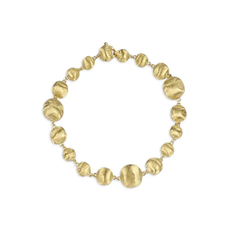 Bộ sưu tập Africa của Marco Bicego lấy cảm hứng từ vẻ đẹp của thiên nhiên và phong cảnh châu Phi. Những hình khối tròn đặc trưng gợi nhớ ánh mặt trời ấm áp, những đụn cát vàng và nguồn năng lượng bất tận phản chiếu trong từng chi tiết trang sức.