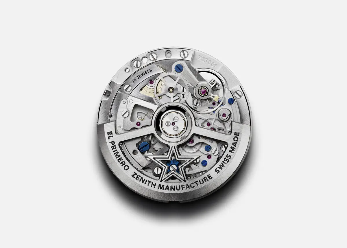 Bên trong là bộ máy El Primero tự động, hoạt động với tần số cao 36.000 nhịp/giờ (5 Hz), cho độ chính xác vượt trội và dự trữ năng lượng khoảng 60 giờ.